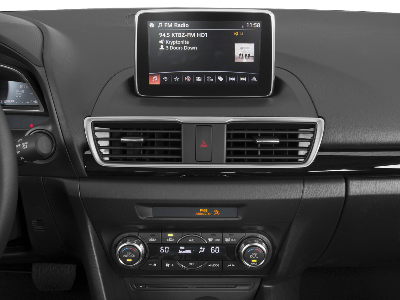 - Radio: AM/FM/HD Audio System -inc: digital clock, 6-speaker full-range door-mounted type sound system, Bluetooth® handsfree phone and audio, auxiliary audio input jack and 2 USB audio input, MAZDA CONNECT™ Infotainment System, voice-command, E911 automatic emergency notification, 7" full-color touch-screen display, multi-function Commander control, Pandora, Aha and Stitcher internet radio integration, Radio Broadcast Data System program information and SMS text message audio delivery and reply